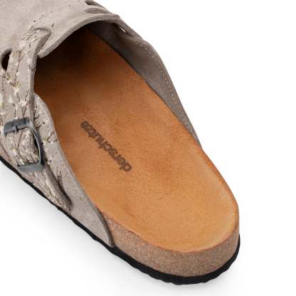 suede leather / leather inner-lining / cork footpad with eva outsole / embroidered side panels and belt / fits true to size / manufactured in Türkiye