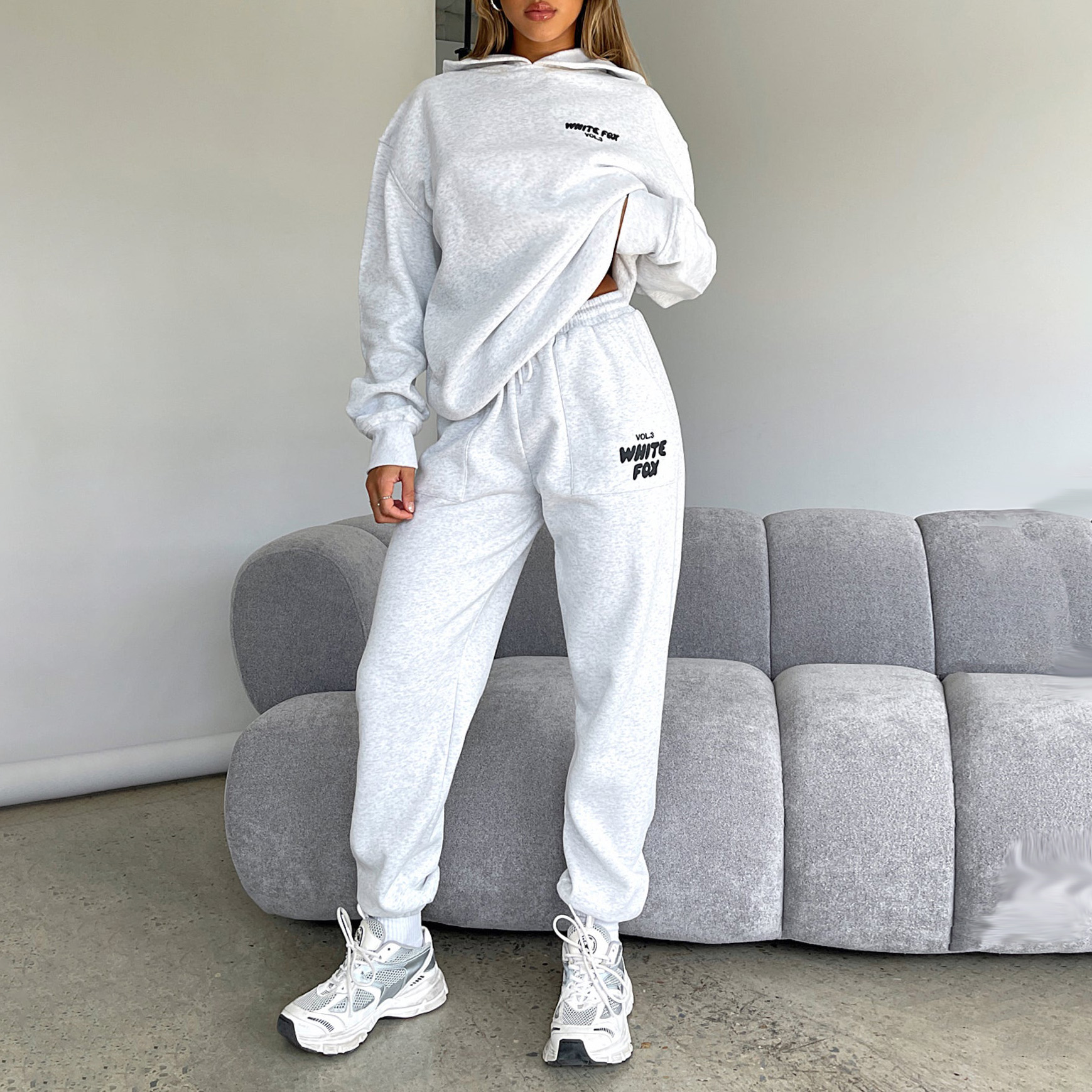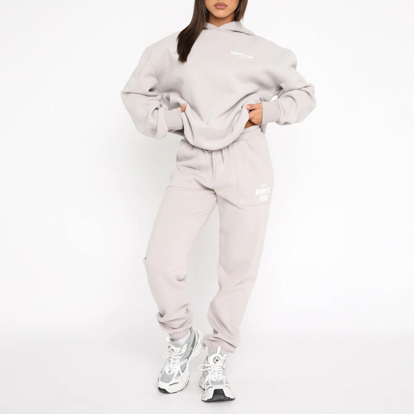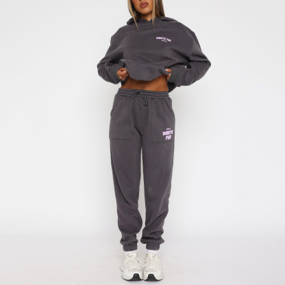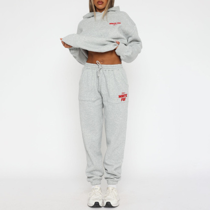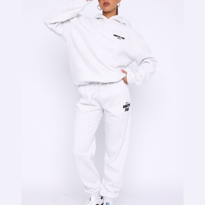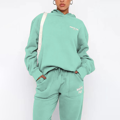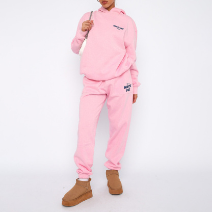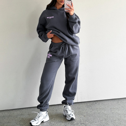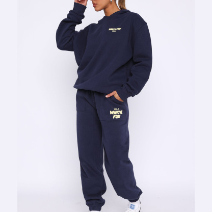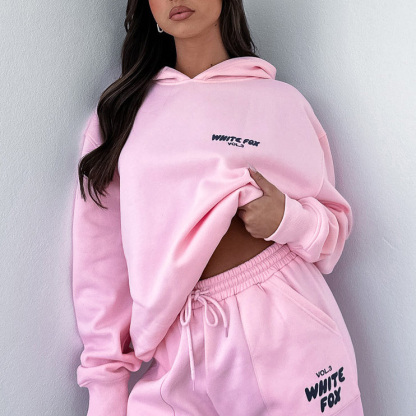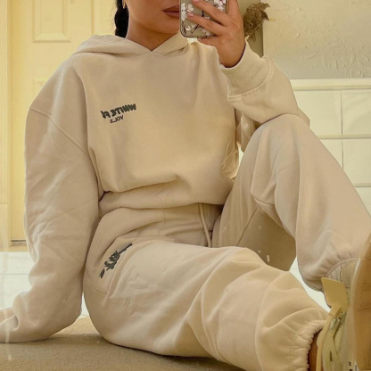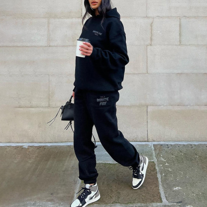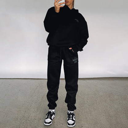 Fashion Sports LOGO Long Sleeve Pullover Hooded Sweatshirt Two Piece Set
