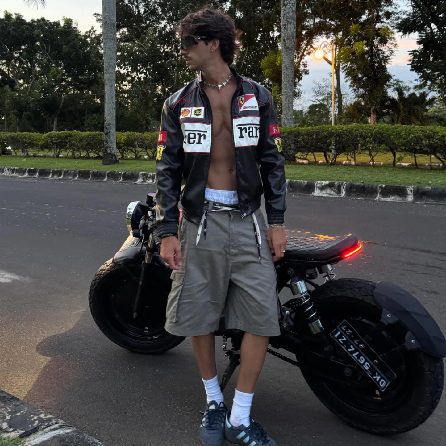 White Ferrari Leather Racing Jacket