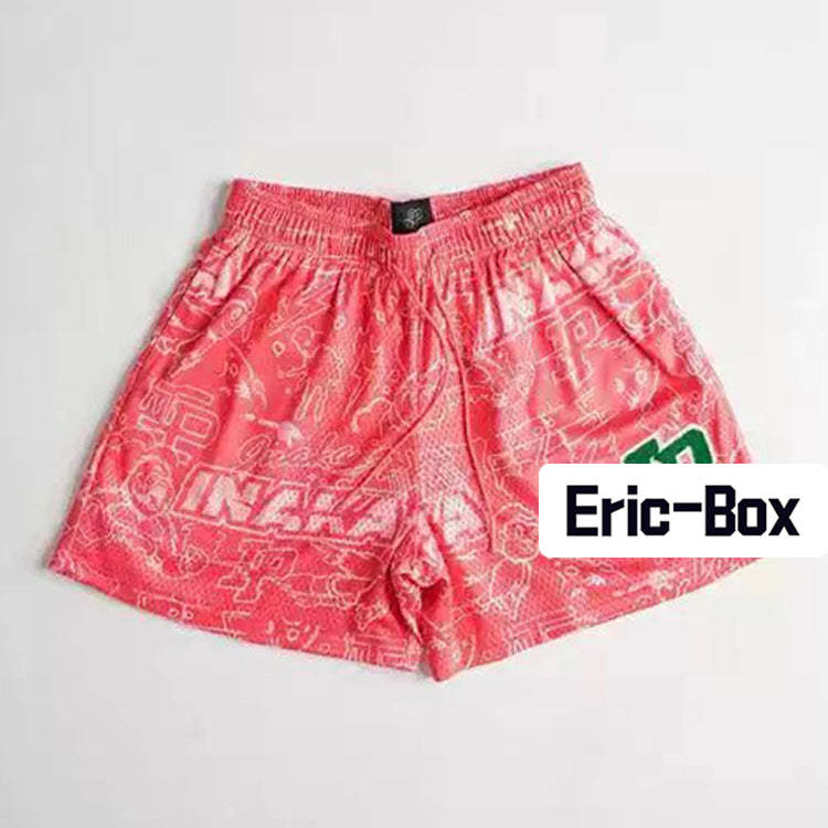 Red Retro All-Over Pattern Graffiti Mesh Shorts